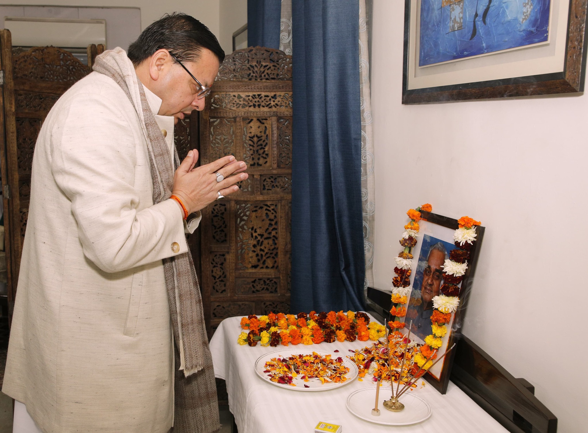 मुख्यमंत्री श्री पुष्कर सिंह धामी ने पूर्व प्रधानमंत्री और भारत रत्न से अलंकृत स्वर्गीय अटल बिहारी वाजपेयी जी की जयंती पर उत्तराखण्ड निवास नई दिल्ली में उनके चित्र पर श्रद्धासुमन अर्पित करते हुए उनका भावपूर्ण स्मरण किया।