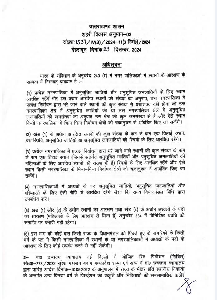 उत्तराखंडमुख्य समाचारनगर पालिका परिषदों के अध्यक्ष पदों की आरक्षण एवं आवंटन सूची। जन स्तंभDecember 23, 202401 min नगर पालिका परिषदों के अध्यक्ष पदों की आरक्षण एवं आवंटन सूची। Post navigation Previous: नगर निगमों के मेयर पदों की आरक्षण एवं आवंटन सूची।Next: प्रदेश के 11 नगर निगमों के सामान्य निर्वाचन 2024 की अधिसूचना। Uttarakhand ULB Election Leave a Reply Cancel replyYour email address will not be published. Required fields are marked *Comment * Name * Email * Website Save my name, email, and website in this browser for the next time I comment.
