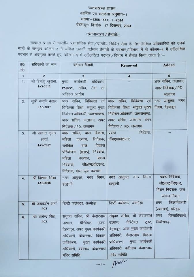 उत्तराखंडमुख्य समाचारभारतीय प्रशासनिक सेवा/ प्रान्तीय सिविल सेवा के अधिकारियों की ट्रांसफर लिस्ट। जन स्तंभDecember 17, 202401 mins भारतीय प्रशासनिक सेवा/ प्रान्तीय सिविल सेवा के अधिकारियों की ट्रांसफर लिस्ट। Post navigation Previous: मुख्यमंत्री श्री पुष्कर सिंह धामी ने मंगलवार को मुख्यमत्री आवास में 45 नव चयनित अभ्यर्थियों को नियुक्ति पत्र प्रदान किये।Next: सरकार जनता के द्वार’ कार्यक्रम के तहत नामित अधिकारी अपने आवंटित गांवों में जाकर लोगों की समस्याओं को सुनेगे और उनका समाधान सुनिश्चित करेंगे। Leave a Reply Cancel replyYour email address will not be published. Required fields are marked *Comment * Name * Email * Website Save my name, email, and website in this browser for the next time I comment.